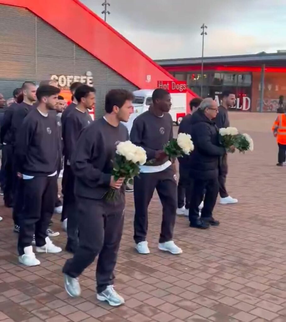 Ku itariki ya 13 Mata 2026, nibwo abakinnyi ba Paris Saint-Germain basuye ahashyizwe urwibutso rwa Diego Jota imbere ya stade ya Anfield, bashyiraho indabo mu kumwibuka.