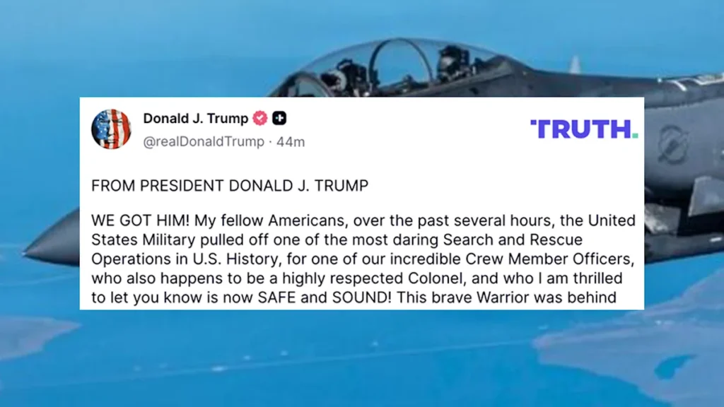 Mu itangazo rye, ku rubuga rwe nkoranyambaga, Truth Social, Perezida Trump yavuze ko indege yavuze ko uyu mupilote w’umukoloneli, yari mu “butayu bw’imisozi miremire” kandi aratabarwa nubwo “yahigwaga” n’Ingabo za Iran.
